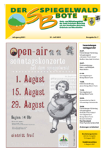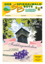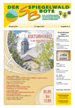 Der Spiegelwaldbote für öffentliche Bekanntmachungen und Mitteilungen der Stadt Grünhain-Beierfeld erscheint monatlich. Unternehmen, Institutionen und Vereine haben die Möglichkeit, Informationen zu veröffentlichen. Anzeigen, Veranstaltungshinweise und allgemeine Informationen runden das Angebot ab.