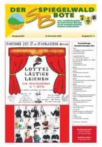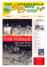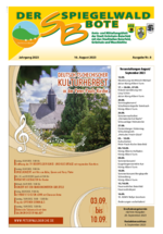 Der Spiegelwaldbote für öffentliche Bekanntmachungen und Mitteilungen der Stadt Grünhain-Beierfeld erscheint monatlich. Unternehmen, Institutionen und Vereine haben die Möglichkeit, Informationen zu veröffentlichen. Anzeigen, Veranstaltungshinweise und allgemeine Informationen runden das Angebot ab.